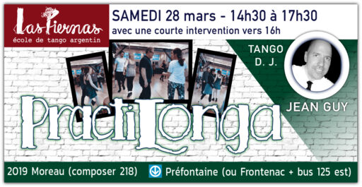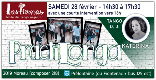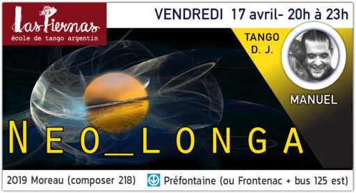 Nous avons différents style de soirées, la PractiLonga est justement dédiée à nos étudiants et elle est gratuite pour les élève de niveau DÉBUTANT de la session en cours ! À l’école, on prend le soin de vous sensibiliser à savoir comment se déroule une soirée dansante et comment fonctionne la circulation sur la piste. Vous pouvez venir nous voir et vous familiariser avec nos autres soirées dès le début.